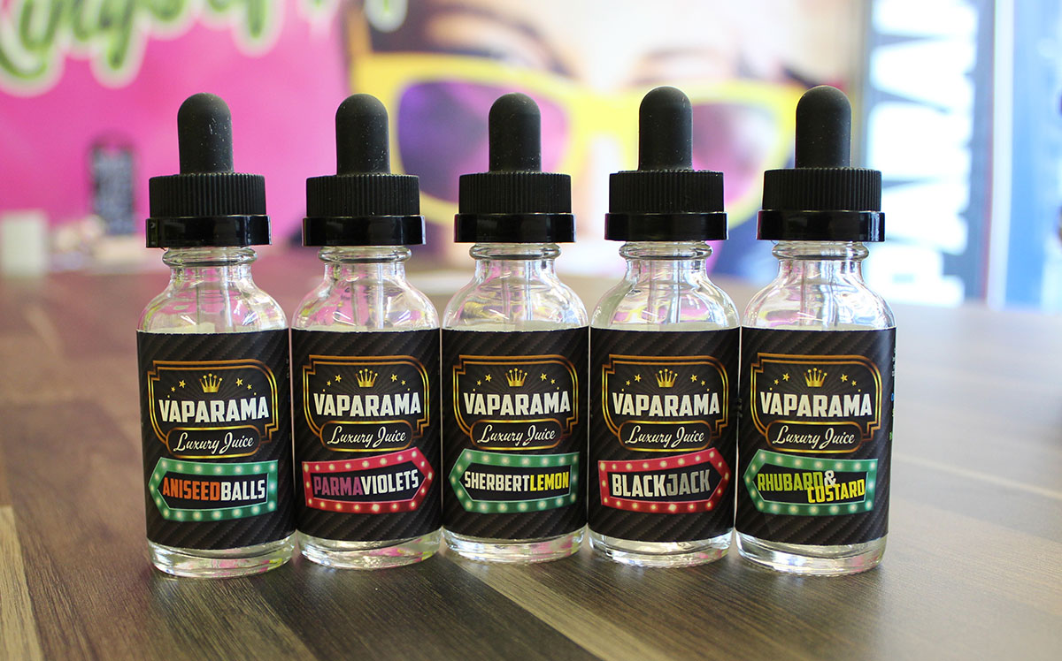 Aniseed Balls, Parma Violets, Sherbert Lemon, Blackjack, Rhubard & Custard and Cola Cubes all available at vaparama.co.uk.